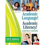 Academic Language Academic Literacy: A Guide for K-12 Educators ReviewEli R. Johnson's ACADEMIC LANGUAGE! ACADEMIC LITERACY! A GUIDE FOR K-12 EDUCATORS packs in 36 strategies in a research guide to help teachers make connections between academic language, literacy and student achievement. Strategies explain how to give students the tools and skills needed to understand academic language, offering descriptions and collaborative protocols to help with academic language in different disciplines. Word lists for different grade levels blend with clear instructions to make for an excellent guide.Academic Language Academic Literacy: A Guide for K-12 Educators OverviewThishands-on resourceprovides teachers, coaches, and administrators with 36research-based strategies that are proven to help students develop the necessary skillsfor academic language in reading, writing, listening, and speaking. English Language Learners, special needs students, and struggling readers will benefit from these literacy strategies that create academic success. These practical and proven strategies fit in perfectly with an RTI Intervention Framework.Major topics and themes include:What is academic language and how does itsupport content area instruction?